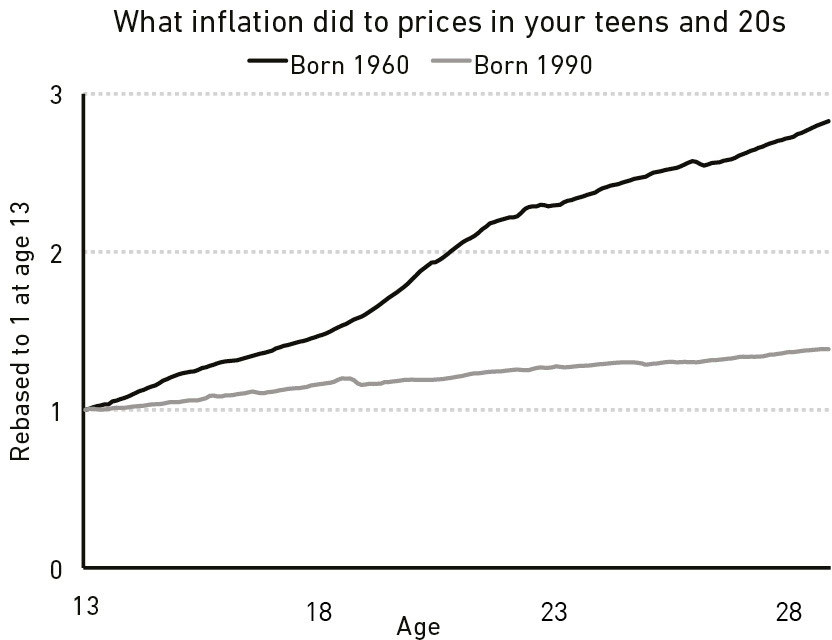 The person who grew up when inflation was high experienced something the person who grew up with stable prices never had to.