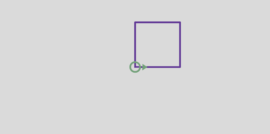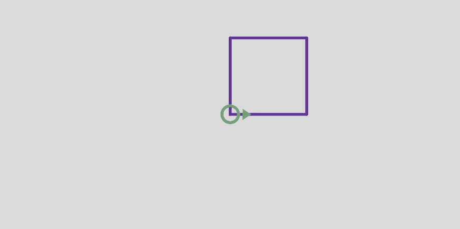 This program moves the turtle east and then north, leaving two line segments behind. Before you go on, see if you can modify the program to make a square.
