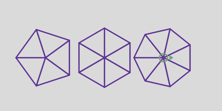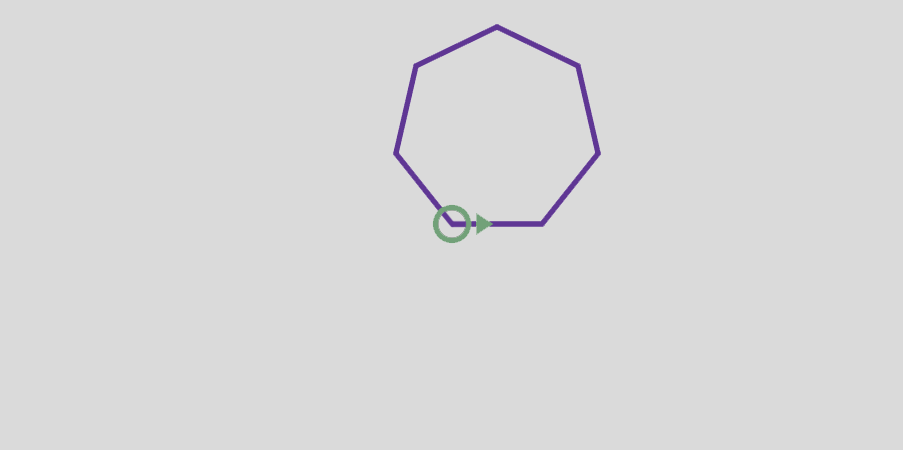 The following example draws a 7-sided polygon with side length of 30: