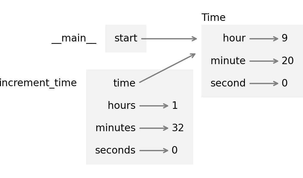 The following stack diagram shows the state of the program just before increment_time modifies the object: