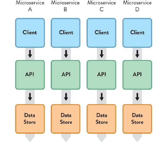 Figure 2.3: Microservices Architecture with Independent Services and Data Stores