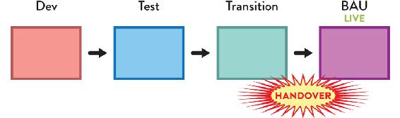 Many organizations have significant flaws in the way their teams interact as part of building and running software systems. Specifically, such organizations seem to assume that software delivery is a one-way process, leading from specification to design, from design to coding, from coding to testing and releasing, and from releasing to business as usual (BAU) operation (see Figure 4.1).