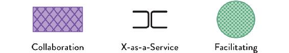 Collaboration mode is shown with diagonal cross-hatching, X-as-a-Service mode is shown with brackets, and facilitating is shown with dots.